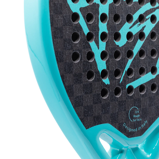 The 12K woven carbon frame ensures superior rigidity and responsiveness, while the new air foam frame system improves structural stability by reducing vibrations on impact. The dual-density foam balances power and comfort, offering a progressive response that dynamically adapts to the intensity of the shot.