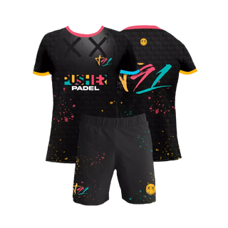 An exclusive microfilament interlock blend of 85% ultra-premium polyester + 15% high-strength elastane, developed to offer extreme lightness, advanced breathability and unparalleled durability. The 130gr weight remains unchanged, but the structure has been optimised to reduce friction and adapt to the explosive movements of padel.