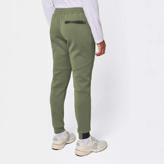 The elastic waistband with a two-tone drawstring ensures precise and comfortable adjustment, while the jersey-lined front pockets offer practicality without sacrificing a soft feel against the skin. The heat-sealed back pocket adds a technical touch and allows for the safe storage of small items.